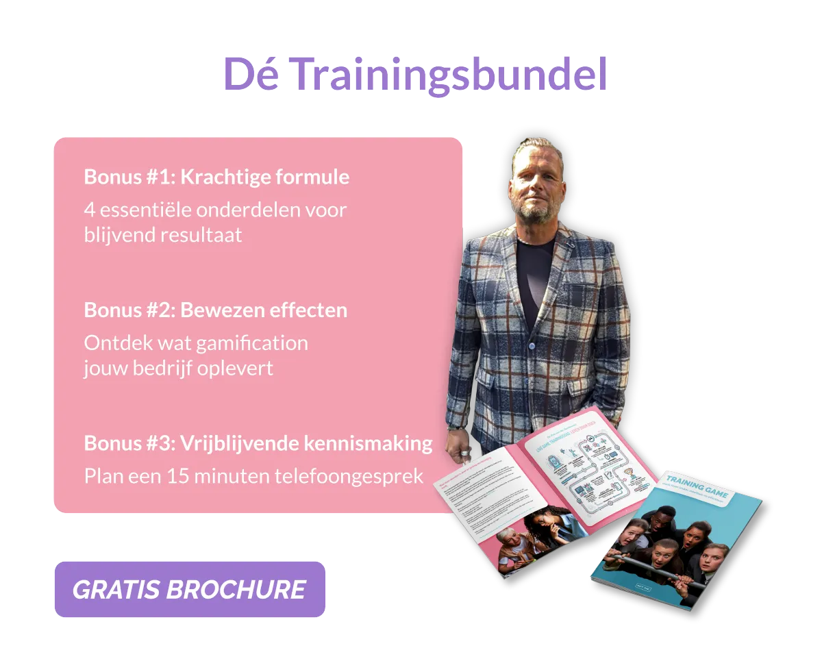 In de brochure lees je precies hoe zijn unieke methode werkt. Van eerste ontwerp tot de impact op de werkvloer. Geen saaie training meer, maar een beleving die bijblijft.